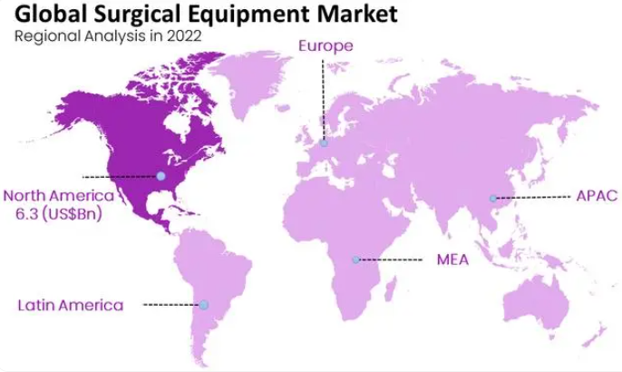 根據(jù)地區(qū)分類,全球手術(shù)設(shè)備市場(chǎng)分為北美、歐洲、亞太、拉丁美洲和中東及非洲。在這些地區(qū)中,北美地區(qū)主導(dǎo)了全球市場(chǎng),占據(jù)了38.0%的市場(chǎng)份額。
