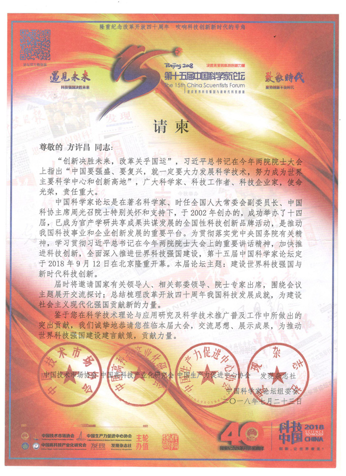 隆重紀(jì)念改革開放40周年第十五屆中國科學(xué)家論壇將于2018年9月12-13號在北京隆重召開,深圳市御嘉鑫五金制品有限公司董事長、總經(jīng)理方許昌先生,也將受邀參加此次中國科學(xué)家論壇!同各界人士一道,交流思想、展示成果,積極為中國科學(xué)創(chuàng)新事業(yè)的發(fā)展貢獻(xiàn)出自己的力量。